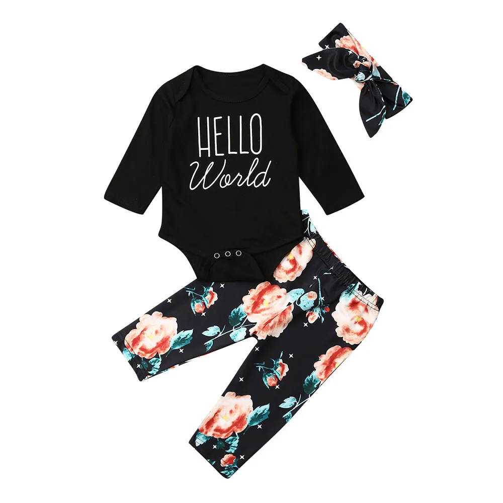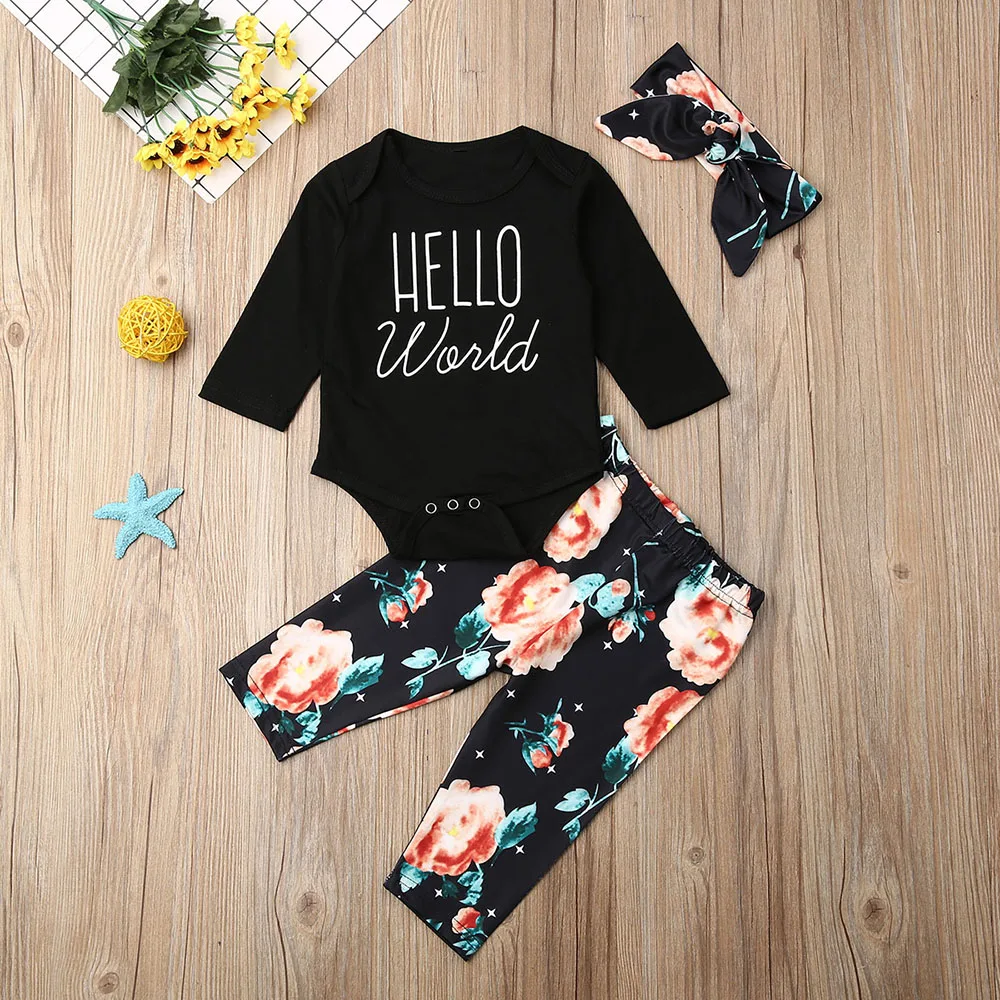 Cheap Chance for Newborn Clothing Set Baby Girl Long Sleeve Letter Romper Jumpsuit Tops Floral Pants Leggings Outfit